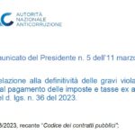 Con il Comunicato del Presidente n. 5 dell’11 marzo 2026, Anac ha voluto fornire agli operatori economici uno strumento pratico per l’individuazione di eventuali violazioni definitivamente accertate e per la verifica della propria regolarità fiscale e contributiva, in modo da consentire loro di valutare tempestivamente le azioni necessarie per la regolarizzazione.